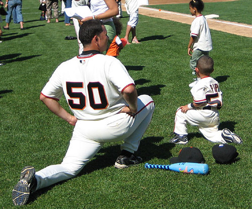 July 22, 2006 Eliezer and Omar Alfonzo Omar Alfonzo stretches with his dad, Eliezer Alfonzo. Share this: Click to share on Facebook (Opens in new window) Facebook Click to share on X (Opens in new window) X Like Loading... Related