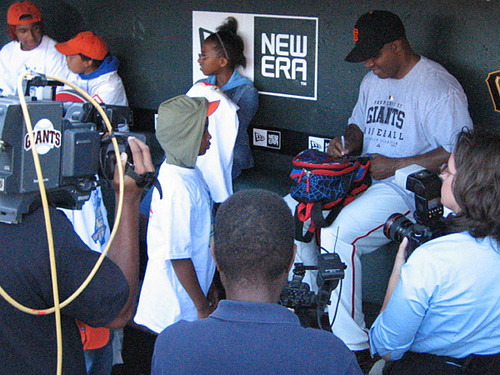 July 31, 2006 Spider-Man Barry Bonds signs a student’s Spider-Man backpack. Share this: Click to share on Facebook (Opens in new window) Facebook Click to share on X (Opens in new window) X Like Loading... Related