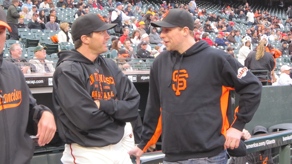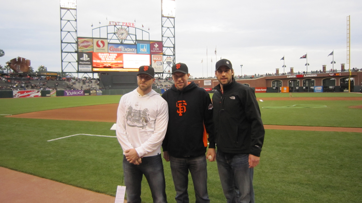 Heatley came to the yard with teammates Ryane Clowe, Jay Leach and Niclas Wallin to take in a game during their four-day break from the Stanley Cup playoffs. Heatley’s said before that he would love to take batting practice, but because of the scheduling, that wasn’t possible. Instead, the Giants arranged for him to join the previously scheduled Boys & Girls Club California Youth of the Year, Winnie Phan, in throwing out the first pitch.