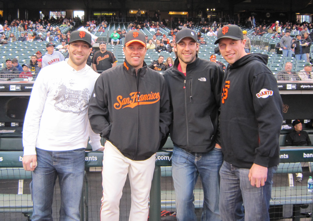 Giants special assistant J.T. Snow dropped by to chat and pose for pictures with the Sharks players, and Heatley hung out with Barry Zito (someone told me they were already acquainted), who would be catching Heatley’s first pitch.